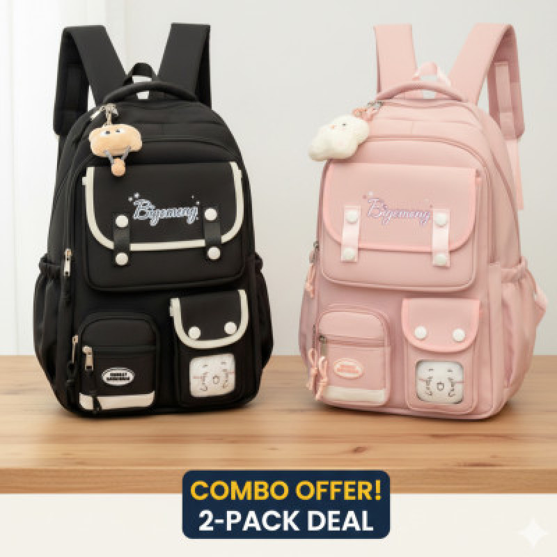 School bag (Black+Pink) 2 pcs combo